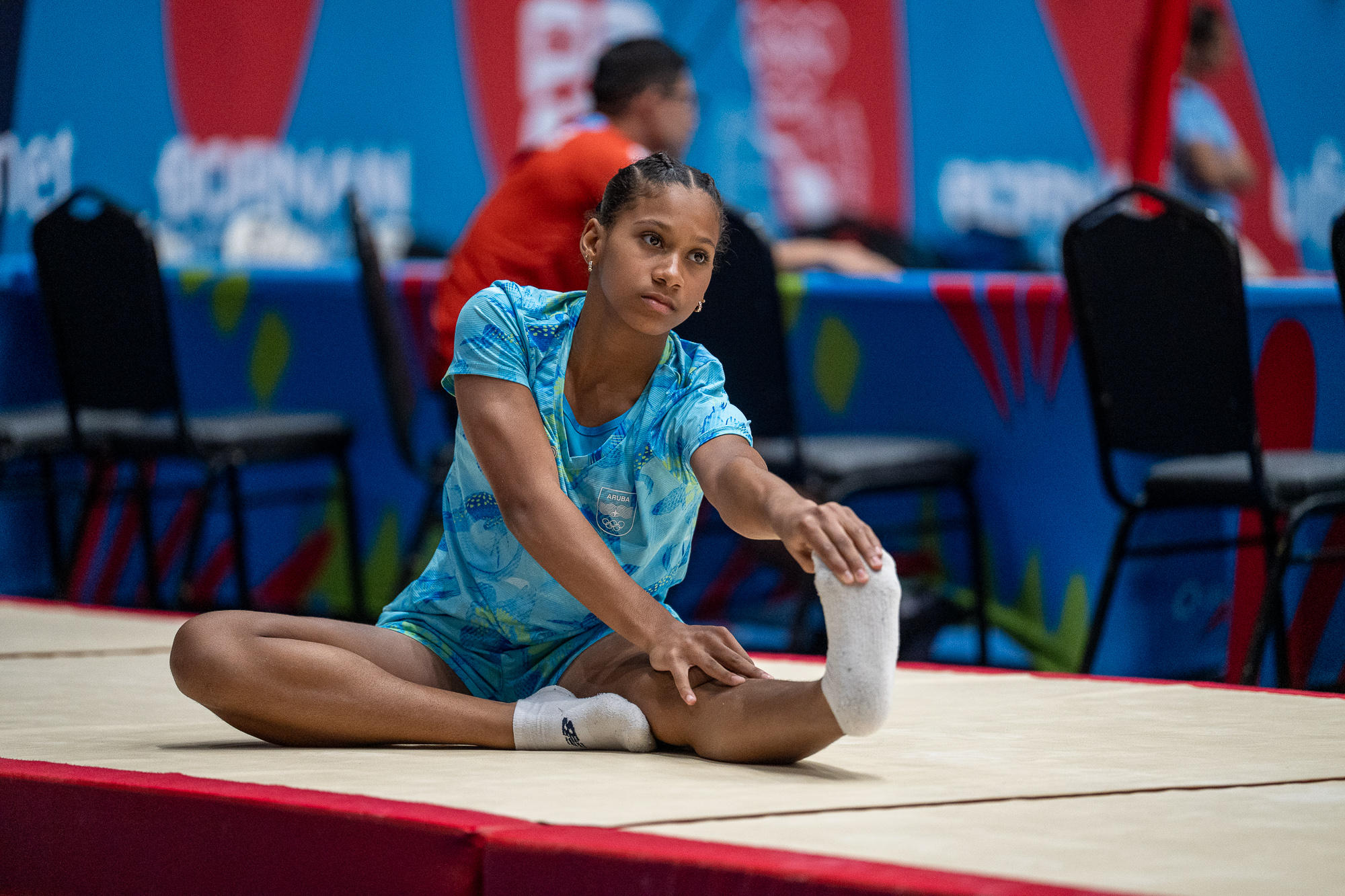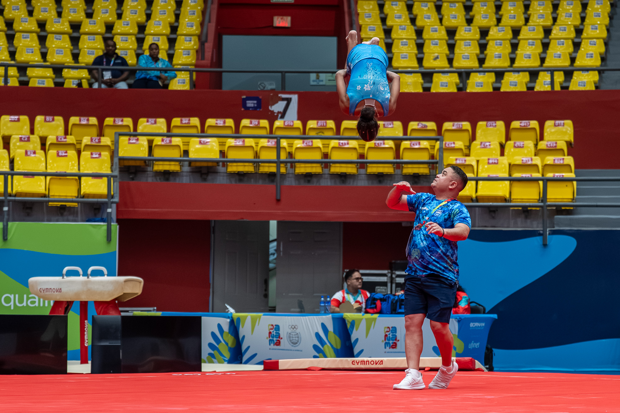Despues di a yega na Panama pa e Weganan Suramericano di Hubentud ayera mainta, atleta di TEAMARU Malaky van Dinter hunto cu entrenador Jimmy Palma a bay “Complejo Deportivo Irving Saladino” pa asina haci nan prome entrenamento di Gimnasia Artistica na Panama2026.