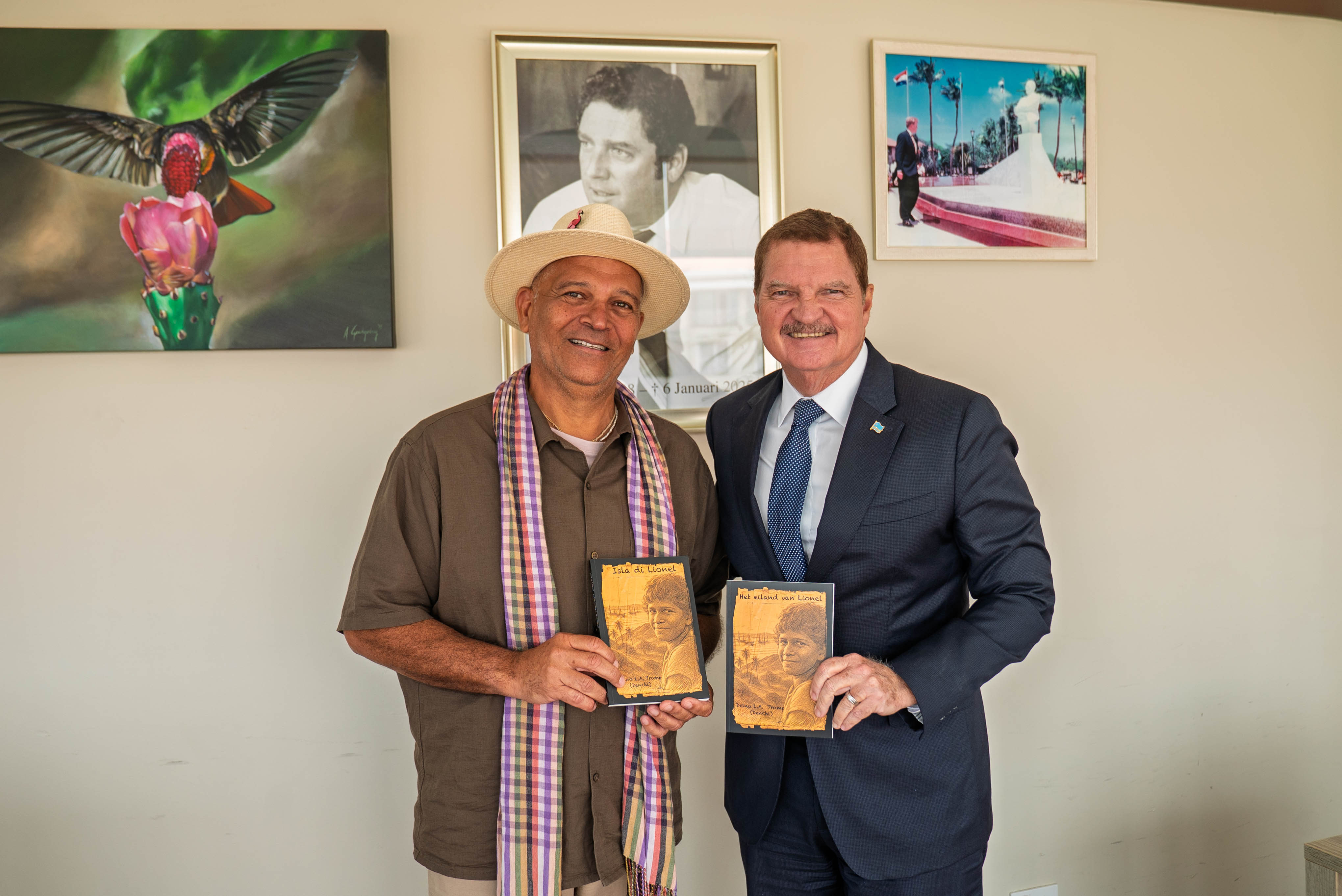 Den un ambiente calido y culturalmente enrikecedor, Prome Minister Mike Eman a ricibi recientemente bishita special unda a haci entrega di dos publicacion literario cu enfoke riba identidad, desaroyo personal y imaginacion creativo.