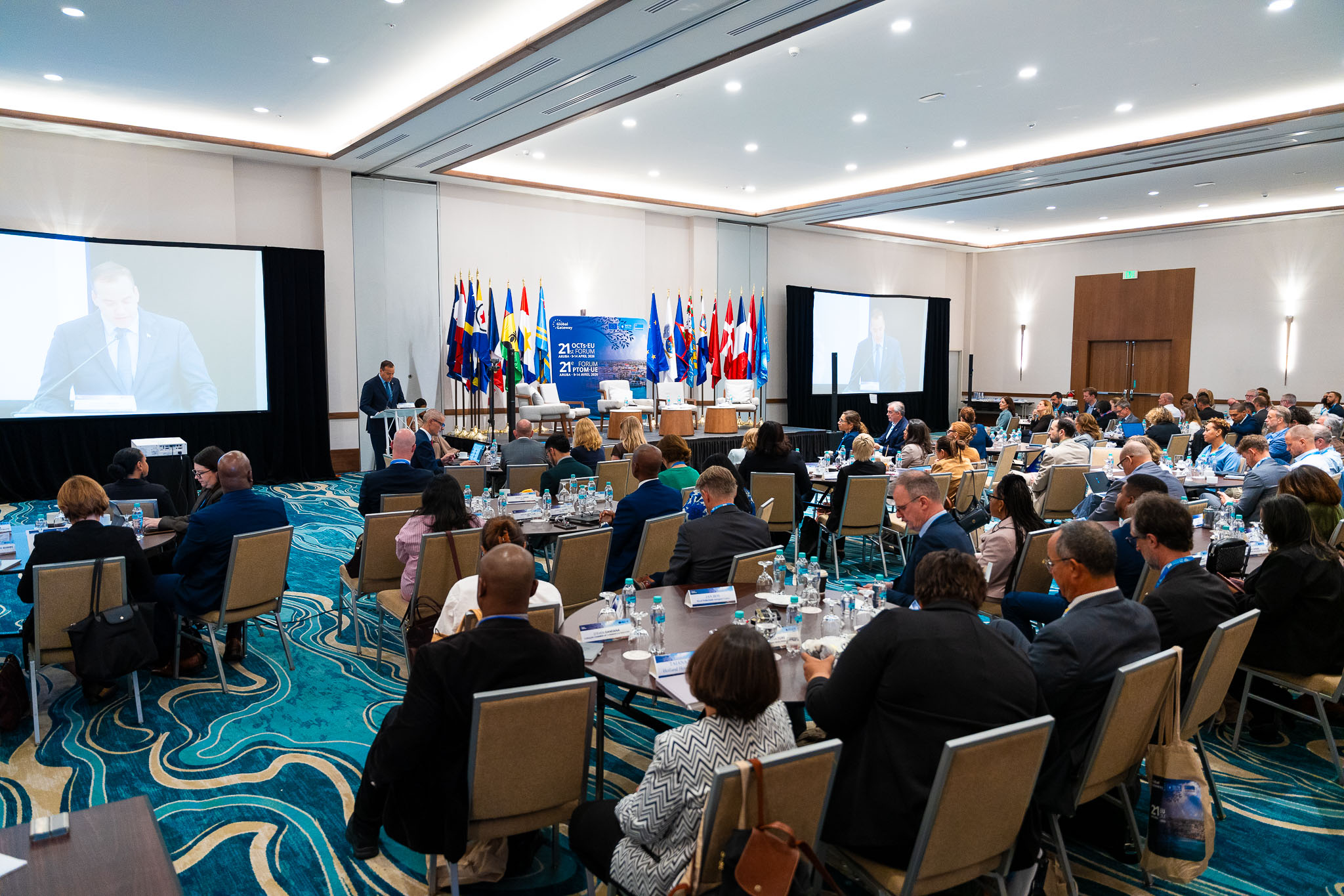 Oranjestad, Aruba – Ayera mainta, Minister di Finansa, Asunto Economico y Sector Primario, mr. Geoffrey Wever, a habri e Prome Investment Conference, cual a forma parti di e 21st EU-OCT Forum cu a tuma luga na Aruba.